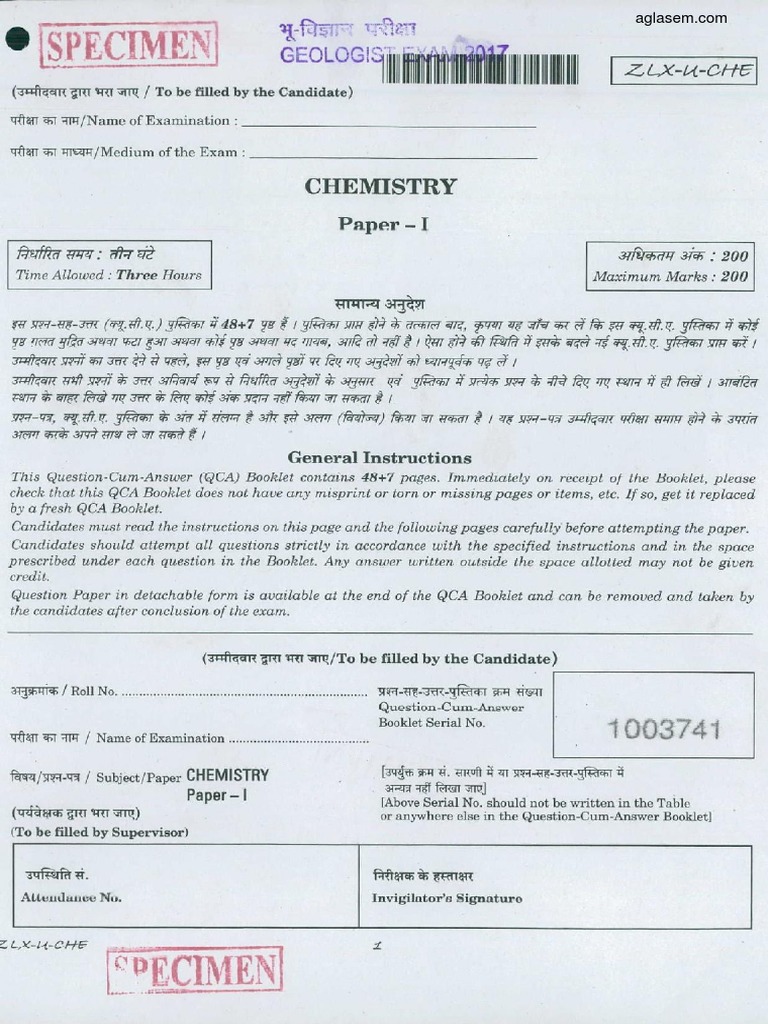 UPSC Blank Answer Sheet Format Geo Scientist Geologist Chemistry Paper